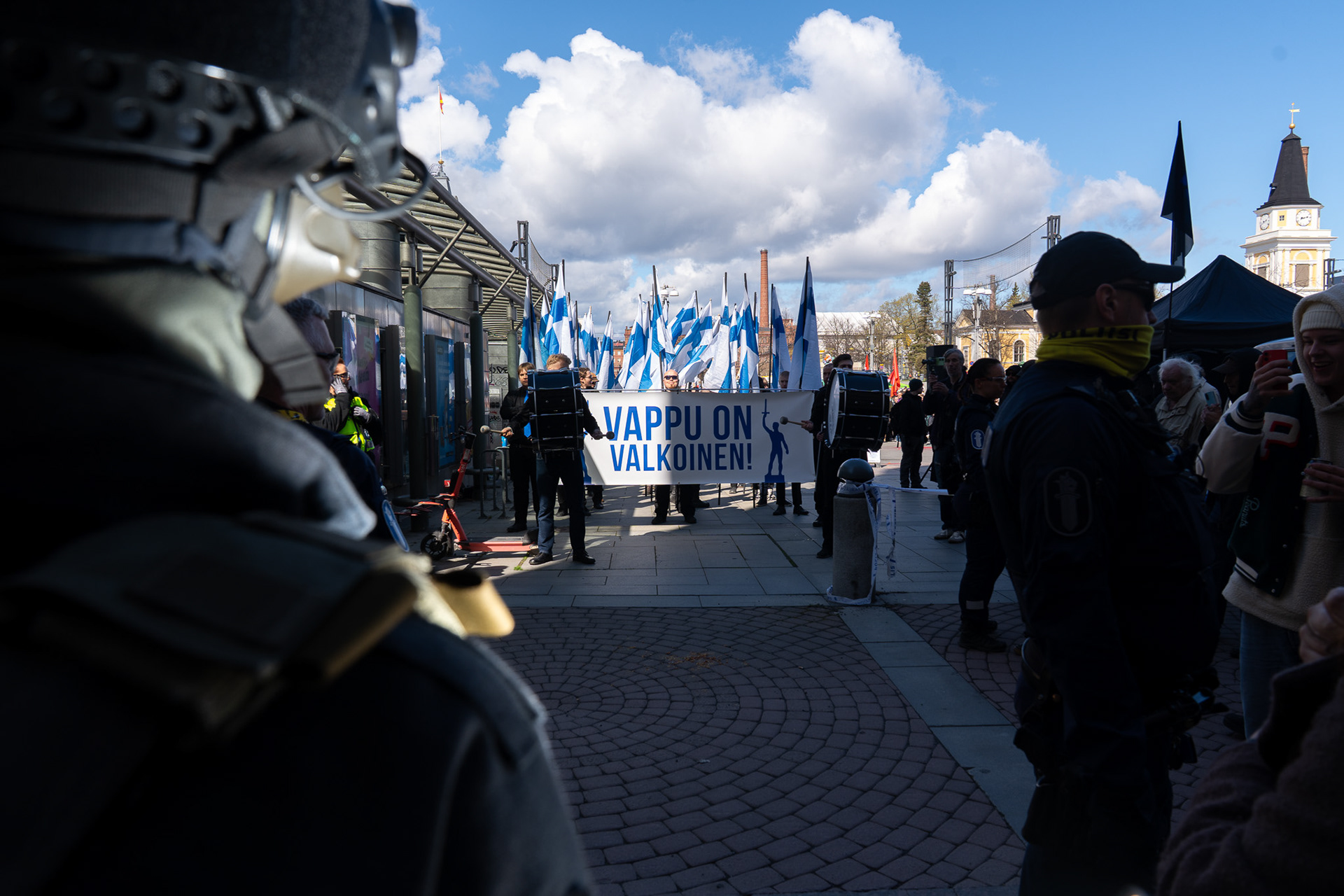 Tampereella  1.5.2025 järjestettiin laitaoikeistolainen Valkoinen  Vappu -tapahtuma. Paikalle saapui osallistujien lisäksi suuri joukko mellakkapoliiseja ja vastamielenosoittajia, sekä tavallista vappuväkeä. Poliisit eivät yrityksistään huolimatta onnistuneet estämään yhteenottoja.